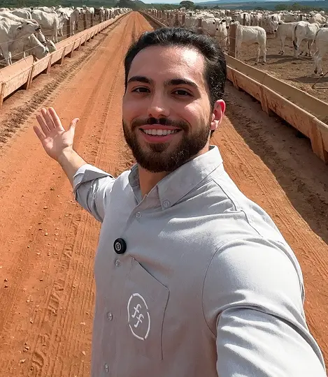 Especialista em nutrição animal, manejo, formulação de dieta e desempenho de rebanhos, ele já ajudou dezenas de produtores, incluindo o Antonio com a Fazenda Fortaleza, a aumentarem ganho médio diário, reduzirem custo de cocho e estruturarem protocolos de manejo que dão resultado no pasto e no confinamento.